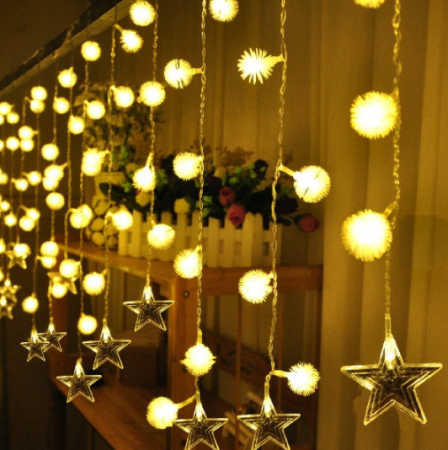 - Perdele luminoase de 2/3 metri, cu diverse figurine (globuri, reni, oameni de zăpadă, steluțe, Moș Crăciun sau brăduți).